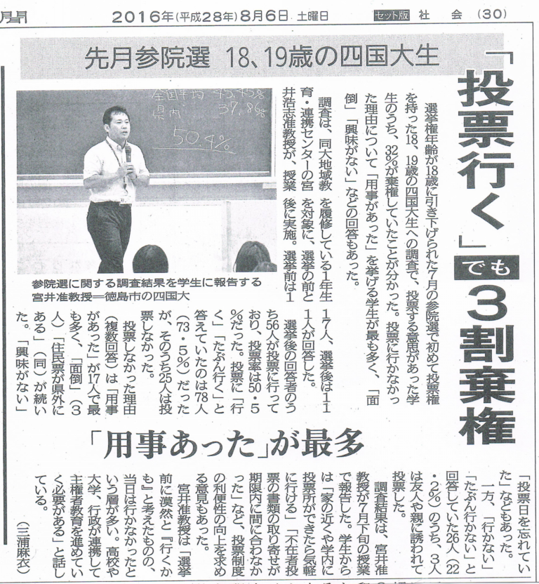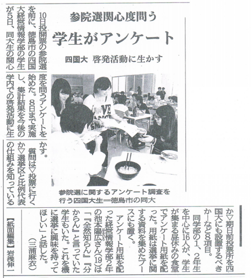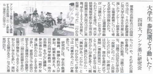 山西が四国大宮井准教授とともに参議院選についてのアンケート実施