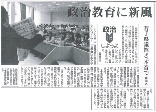 山西が主導し四国大学に主権者教育研究会を設立。参院選後の学生アンケート結果を公表する。